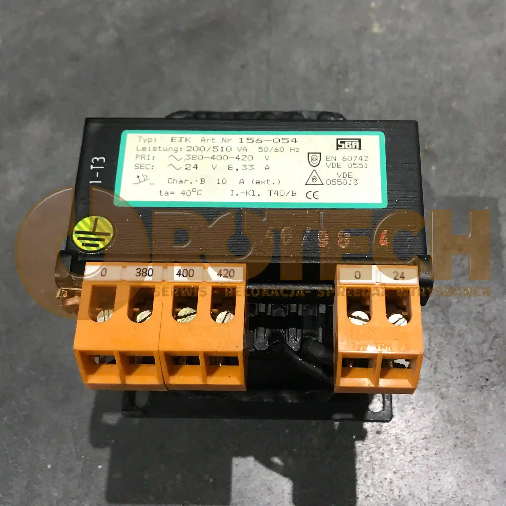 Transformator SBA ETK 156-054 to wysokiej klasy jednostka sterująca, idealna do separacji obwodów i zasilania niskonapięciowej automatyki (24V). Dzięki wielu odczepom po stronie pierwotnej, pozwala na idealne dopasowanie napięcia wyjściowego niezależnie od wahań w sieci zasilającej. Jest to typowy podzespół stosowany w europejskich maszynach przemysłowych ze względu na swoją niezawodność i zgodność z normą VDE 0551.